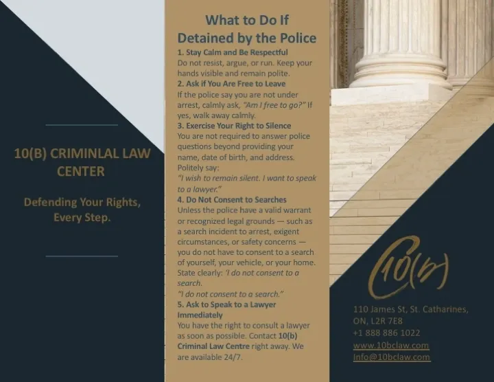 You have the right to consult a lawyer as soon as possible. Contact 10(b) Criminal Law Centre right away. We are available 24/7.